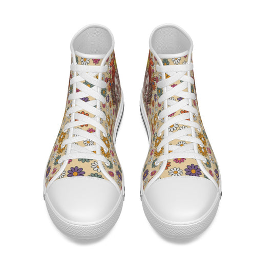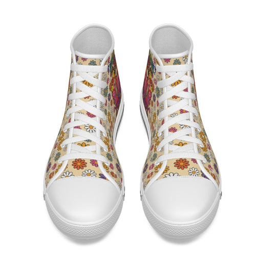 EShoes Personalized Women's Canvas Shoes, Cassette Tape Retro Flower, Custom Name Shoes.