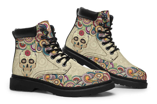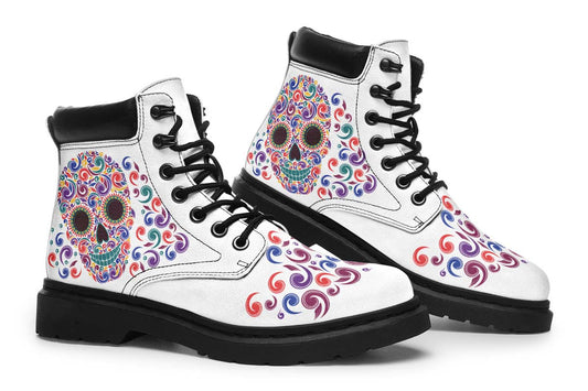 EShoes Personalized Short Boots, Sugar Skull Mexican White Boots, Custom Name Boots.