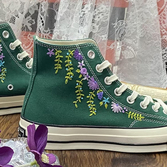 Embroidery Shoes Women's Canvas Shoes, Personalized Shoes, Embroidered Flowers Purple.