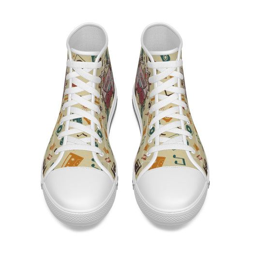 EShoes Personalized Women's Canvas Shoes, Cassette Tape Retro Cowboy Shoes, Custom Name Shoes.