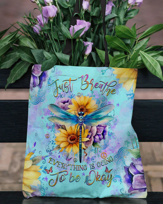 Durable Canvas Tote Bags - JUST BREATHE DRAGONFLY - Lightweight &, High-Capacity Options by EBDR 01220524